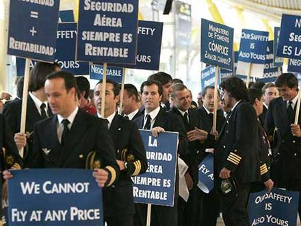 Piloterne protesterer mod Iberias planer for oprettelse af et lavprisselskab, Iberia Express, som fra marts næste år skal stå for selskabets flyvninger på kort- og mellemdistancerne. Piloterne mener, at det nye lavprisselskab vil føre til tab af hen ved 5.000 arbejdspladser inden for Iberia.