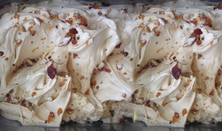 Dagens menu er serrano-skinke rullet om palmemarv, oksekæber med den skønneste sovs og til dessert chokoladeis med nøddekrokant.