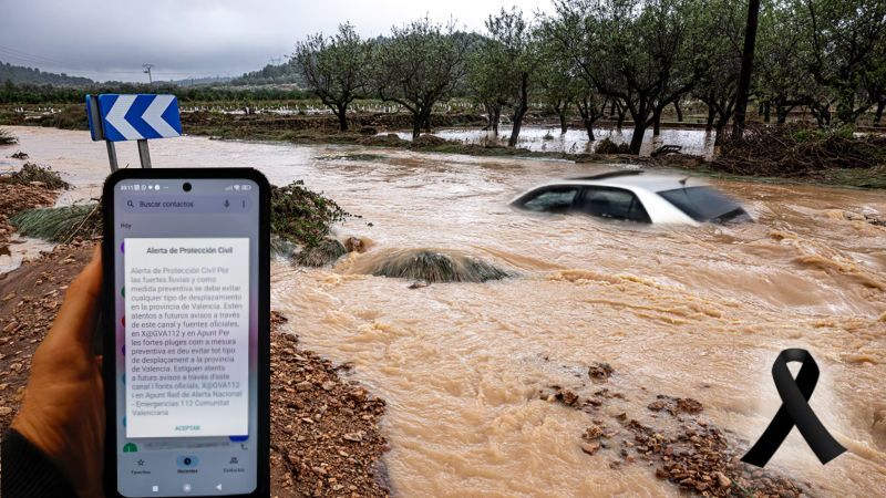 Aemet hævede alarmen til rødt niveau for området klokken 7:36 tirsdag, mens en nødalarm om at blive hjemme først blev udsendt via mobilnetværket klokken 20:00. Og se det er jo en fin måde at sende aben derhen. Man advarede for sent!