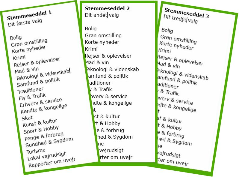 Her er stemmesedlerne - foretag dit valg i én efter én.