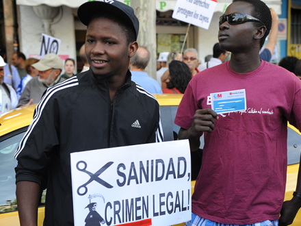 Medlemmer af foreningen Yo Sí Sanidad Universal siger, at de ledsager indbyggere, der ikke har nogen ret til sundhedspleje til læger og hospitaler og forsøger at yde økonomisk støtte, hvis det er muligt.