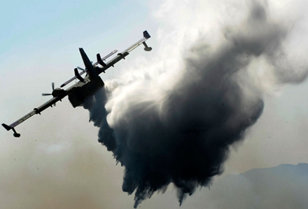 Et af de mange fly der skulle hjælpe med bekæmpningen af branden