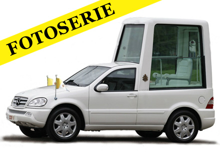 Pavens nye bil, der er bragt til Madrid fra Rom, er - ligesom den forrige – fabrikeret af Mercedes-Benz. ”Akvariet” - kabinen – er naturligvis forsynet med skudsikkert panserglas.