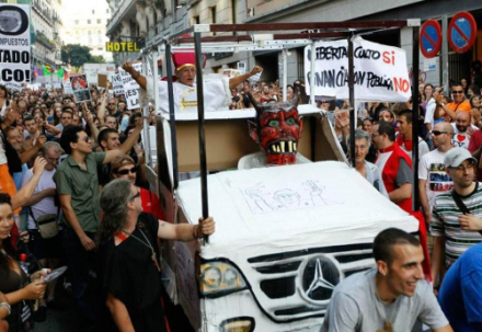 Demonstrationen mod pavens besøg startede kl. 19.30 fra Plaza de Tirso de Molina. Godt 2000 personer var mødt op for at vise deres utilfredshed mod, at regeringen bruger penge på et pavebesøg, når landet er ramt af dyb økonomisk krise.