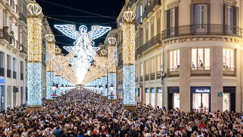 Med den berømte englesang på hovedstrøget Calle Larios, blandet med juleshopping og duften af ristede kastanjer, forvandles Málaga By til et magisk juleparadis for små og store.