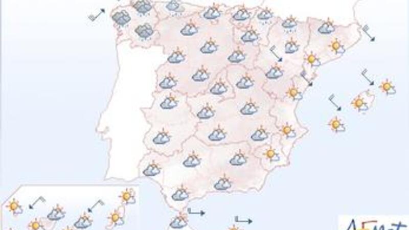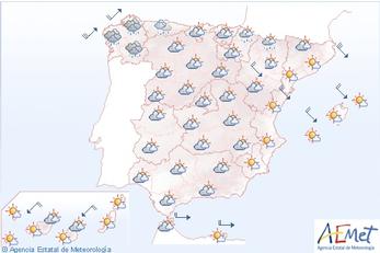 I morgen skyet og med byger, dagtemperaturer på omkring 10 grader i Málaga og Granada, mens Valencia får omkring 17 grader.
