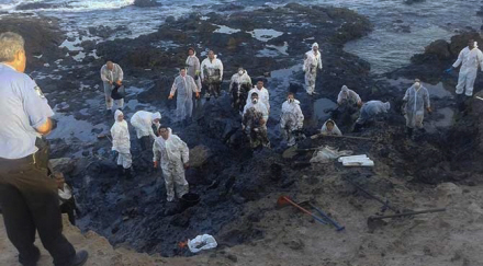Redningstjenester har siden arbejdet i døgndrift for at rydde området og forhindre at olie spredes yderligere.