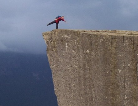 Det er uden tvivl noget af et vovestykke at nærme sig kanten, og der findes da også et hav af vilde billeder på nettet. Ikke desto mindre er Diego det allerførste dødsoffer på Prædikestolen.