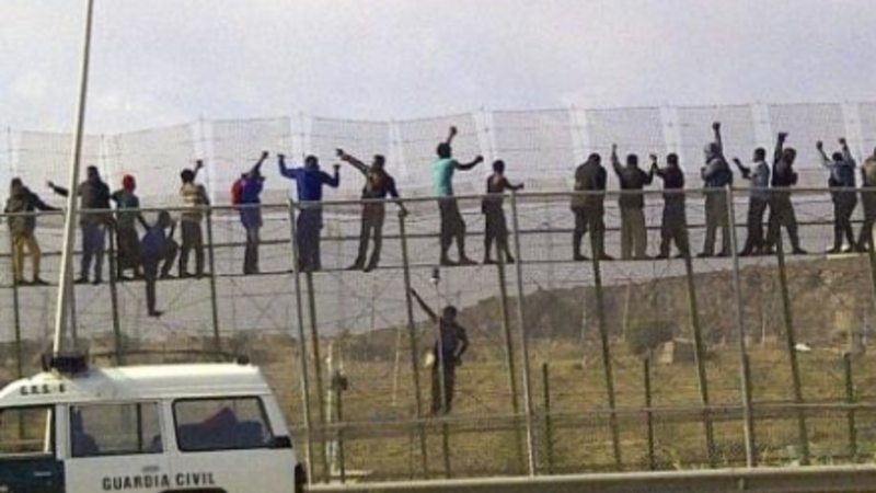 Omkring 800 immigranter forsøgte i går igen at forcerede det seks meter høje grænsehegn mellem Marokko og den spanske enklave Melilla på No...