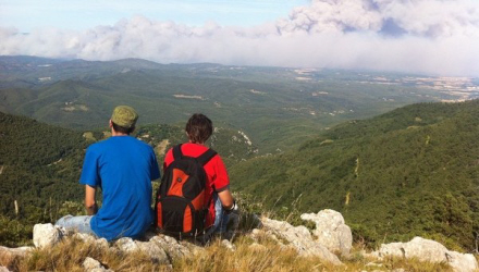 Røgen omslutter bjerget, mens ilden æder løs af skoven nær den franske grænse
