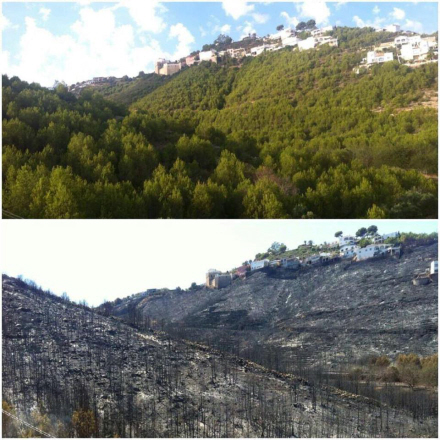 ”I september 2014 blev Naturparken i Montgo ramt af en alvorlig brand, som ødelagde områder af høj økologisk værdi som Cabo de San Antonio.