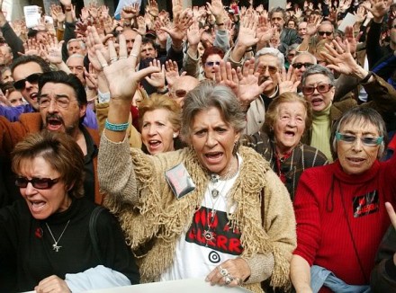 Protesten er rettet mod suspendering af landsretsdommer Baltasar Garzón i forbindelse med hans undersøgen af forsvindinger under Francos militærregime.