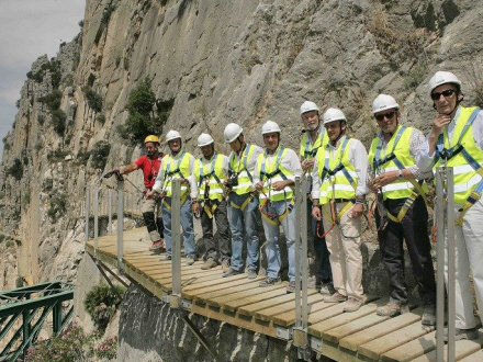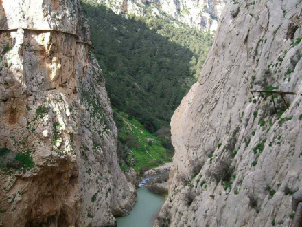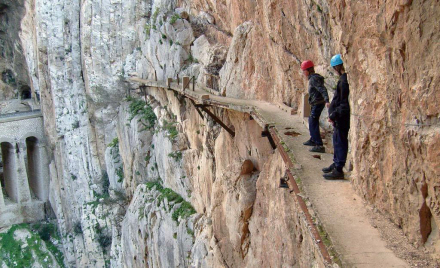 El Caminito del Rey, der er kendt som den farligste gangbro i verden, blev opført i perioden mellem 1901 og 1905 for at arbejdere kunne komme frem og tilbage i forbindelse med opførelsen af en dæmning ved Guadalhorce-floden. Den blev officielt indviet i 1921 af kong Alfonso XIII – deraf navnet. Området er siden blevet døbt ”El Chorro”. Det er de store, blågrønne søer, du kan se fra flyet, når du lander i Málaga Lufthavn.