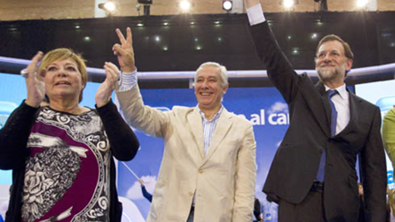 Rajoy blev modtaget af den konservative leder af partiets afdeling i Sydspanien, Javier Arenas, der selv stiller op som spidskandidat til posten som ny regeringsleder ved regionsvalget i Andalusien til marts næste år.