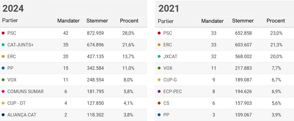 Et andet flertal kunne bestå af PSC og Junts, der gik frem med 3 mandater til i alt 35.
