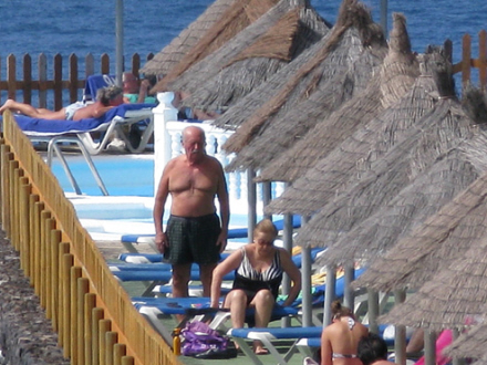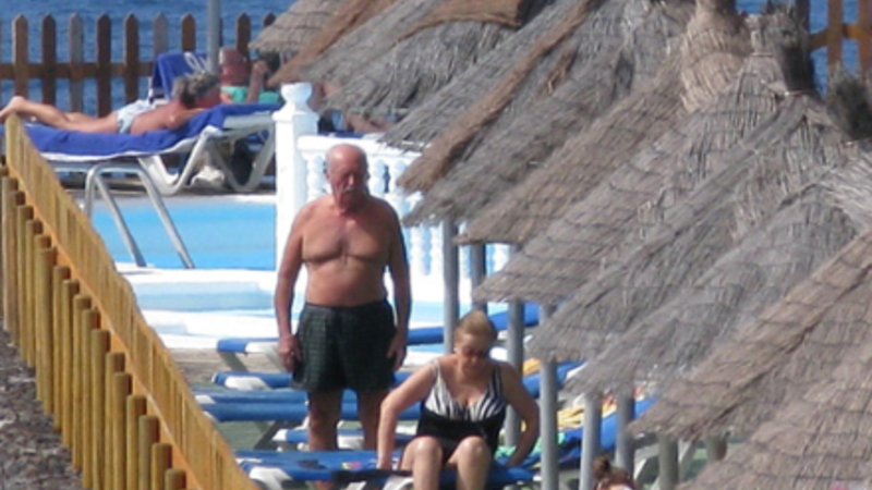 Den nu 78-årige tidligere obertsløjtnant i Guardia Civil, Antonio Tejero, valgte at flygte fra minderne om det mislykkede statskup ved at gemme sig blandt hundredvis af udenlandske turister på hotel Sol Melia de Puerto Naos på La Palma. Som man kan se på billedet, nyder han solen - og angiveligvis også, at han kan få lov til at være lidt anonym lbandt alle udlæningene.