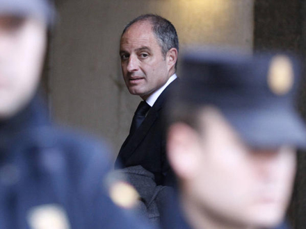 En gruppe demonstranter kastede æg mod bilen, der kørte den skandaleramte forhenværende formand for Valencias regionsregering, Francisco Camp...