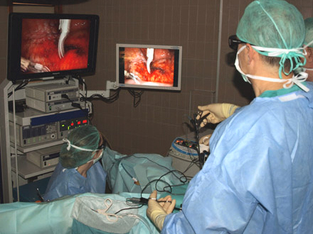 Det nye er 3D - de tre dimensioner – i operationen. Kirurgerne ser stadigvæk på skærme, med de har taget 3D-briller på – som om de var i biografen – og ser nu alle detaljer på skærmen i tre dimensioner.