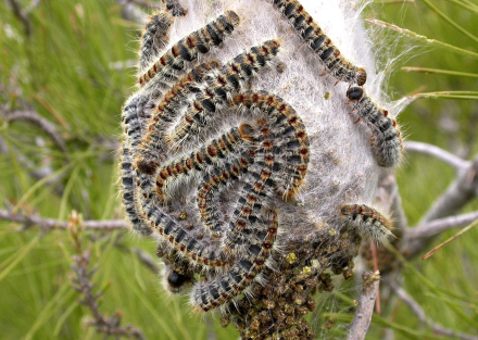 ”På mine ture ud i det Andalusiske landskab ser jeg utroligt mange fyrretræer, som er angrebet af disse larver i deres hvide spindelvæv. De lokale siger, at larverne får træet til at visne. Især på turen til Ronda fra San Pedro er det slemt, og der hvor turisterne og jeg holder pause nær Ronda, har vi stødt på flere processionsrækker af disse giftige banditter.