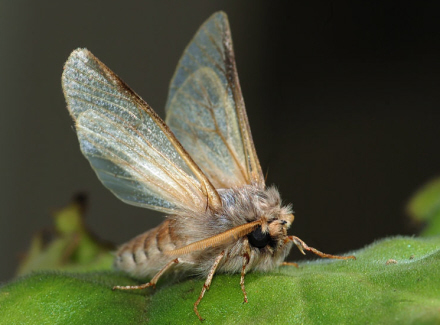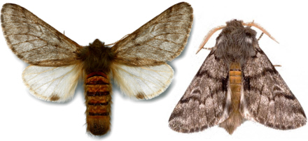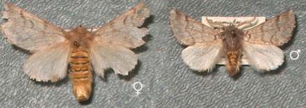 Der er tale om møllet med det mundrette latinske navn Thaumetopoea pityocampa fra Thaumetopoeidae-familien. Den er cremefarvet med brune aftegninger og hvide 'bagvinger'. Den kvindelige møl har et vingefang på mellem 36 - 49 mm, mens den mandlige er lidt mindre nemlig mellem 31 - 39 mm.