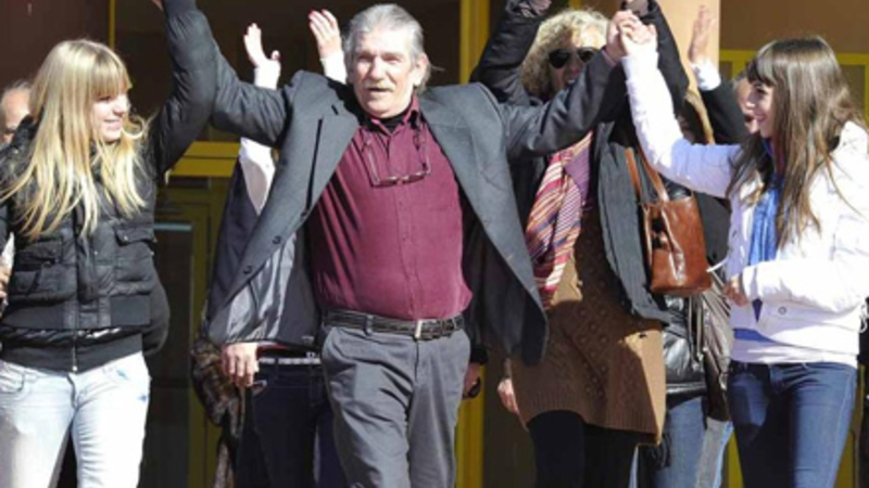 Den lykkelige eksfange erklærede i sit første møde med pressen, at han vil bruge resten af livet på at nyde friheden i selskab med sine to døtre, som han hidtil kun har kendt gennem tremmer.