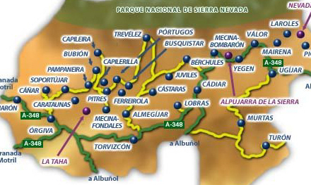 Syd for Sierra Nevada-bjergene ligger der en lille perle af et område ved navn La Alpujarra. Regionen er plantet med ét ben i Granada og det andet i Almería, og menes at have fået sit navn fra det arabiske ord "al Busherat", som betyder Græslandet.