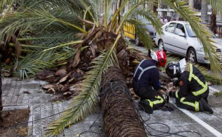 Der faldt i løbet af et par timer op til 58 mm nedbør, 50 træer og palmer væltede, i 12 vejkryds gik lysreguleringen i sort, og flere trafikanter endte i grøften. Vinden var så kraftig, at den blæste palmer omkuld på den centrale Paseo del Colon midt i Barcelona.