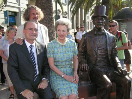 Det var en stor begivenhed, da Prinsesse Benedikte indviede H.C. Andersen-statuen i Málaga. Her fotograferet med Málagas borgmester Francisco de la Torre og kunstneren José María Córdoba