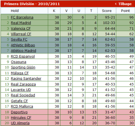 Slutstillingen i La Liga