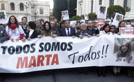 Protesten mod afgørelsen i mordsagen førte i går til masse-protester i 40 spanske byer. I Sevilla gik mere end 10.000 personer på gaden i en protestaktion anført af Martas forældre. Deltagerne bar bannere med tekster som: ”Vi er alle Marta”, ”Lovændringer nu” og ”Jurister og dommer: I tager fejl”.