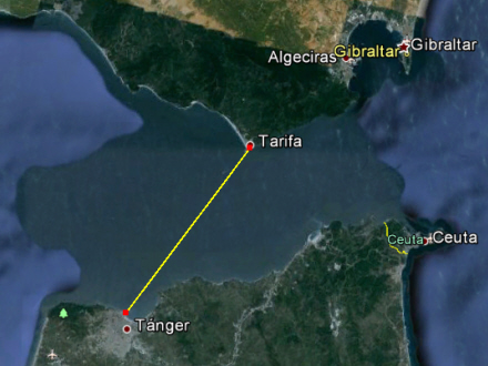 Han svømmede trods alt ikke helt til Tanger, da det ville være dobbelt så langt
