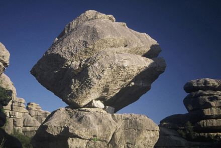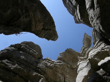 Lige overfor kan man se store klippeblokke, der hænger og nærmest ”dingler”. De ser ud til at kunne falde ned i kløften, hvilket øjeblik det skal være.