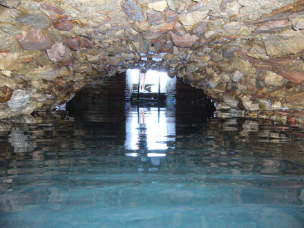 En del parkerede biler ved vejen fortæller os, at nu er vi ved Los Baños de Hedionda. Vi tager en stejl sti ned til ”Los Baños”, og man kan kun undre sig over det besynderlige, ældgamle byggeri.