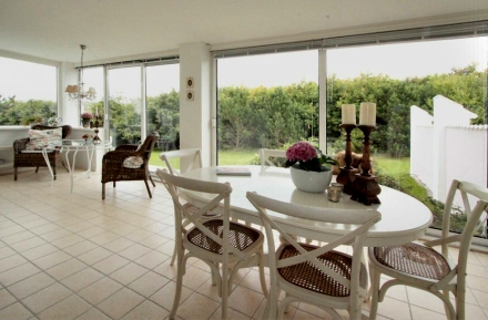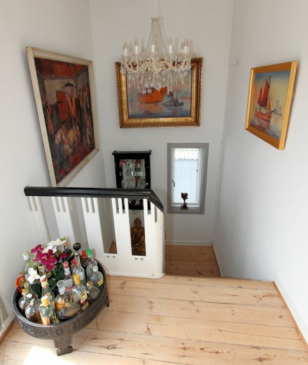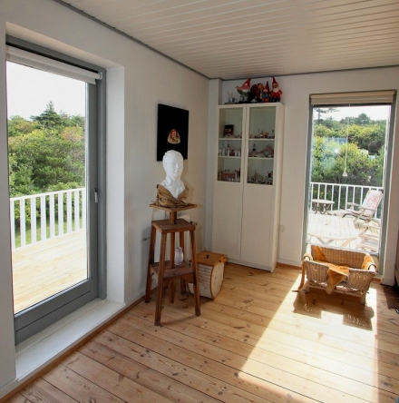 En af de tre markante ejendomme, Trillingerne, der troner sig op i den østlige ende af Rågeleje Strandpromenade. Ejendommen er oprindelig fra 1910 og fremstår med masser af atmosfære og stemning samt en helt ubeskrivelig panoramaudsigt over Kattegat. Det lyse og indbydende interiør komplementeres af mange smukke detaljer samt den imponerende udsigt, der kan nydes fra næsten alle rum.