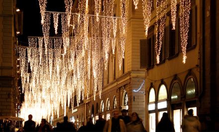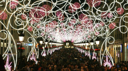 Julebelysning er tændt hver aften fra kl. 18:30 til 01:00 indtil den 6. januar, Hellig Tre Kongers Dag.