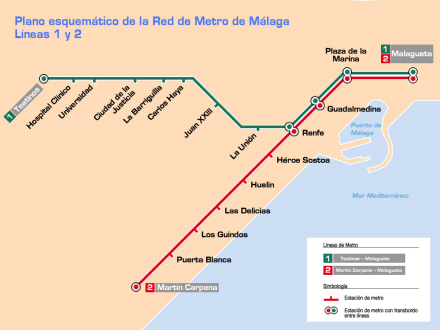 Hele strækningen mellem Universitetsparken, hovedbanegården og sportshallen Martín Carpena menes at være færdig til februar 2013, mens den første del af Metroens linje 2 mellem Martín Carpena og Héroe de Sostoa, og Metroens linje 1 mellem de to universitetsområder formentlig vil kunne tages i brug til november i år.