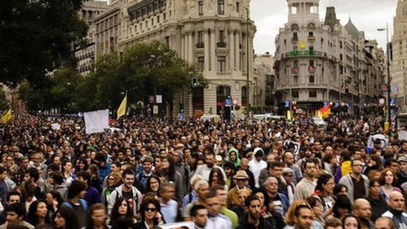 Det er regeringens nedskæringer og arbejdsmarkedsreform, der er hovedårsag til de mange demonstrationer i Spanien, rapporter online-avisen Teinteresa.
