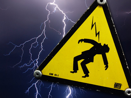 Mand ramt i pungen af lynet