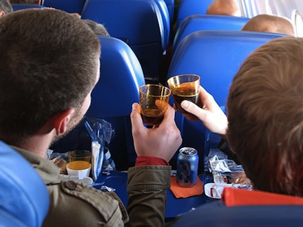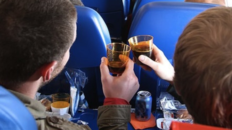 Ferien starter ofte på flyet med at skåle med rejsekammeraterne. Mange glemmer bare at stoppe og skåler hele vejen mod destinationen og gør turen til et helvede for de andre.