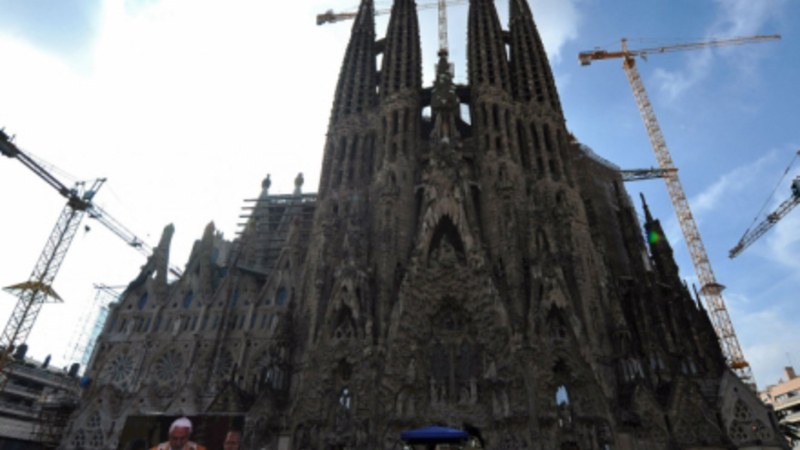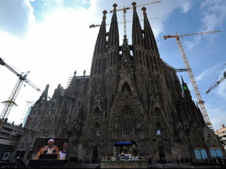 Det er uvist, om paven overhovedet opdagede protestkysseriet, da han ankom til stedet i sin skudsikre 'pope-mobil'. Kirken blev designet af Antoni Gaudí for 128 år siden og er stadig ikke færdigbygget. Paven var således omringet af kraner, da han indviede kirken. Man håber på, at hvis man virkelig lægger sig i selen, så kan kirken stå endeligt færdig inden for de næste 10-12 år.