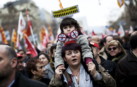 I de andre byer gik folk i gaden under parolen "Nej til retfærdig arbejdsmarkedsreform", hvor de markerede utilfredshed med den nye sreform, som skal gøre det spanske arbejdsmarked mere fleksibelt ved lempelse af reglerne for fyring af fastansatte.