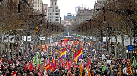 I Madrid protesterede mindst en halv million mennesker, 450.000 i Barcelona, 80.000 i Valencia, 70.000 i Zaragoza og 6.000 i Málaga.