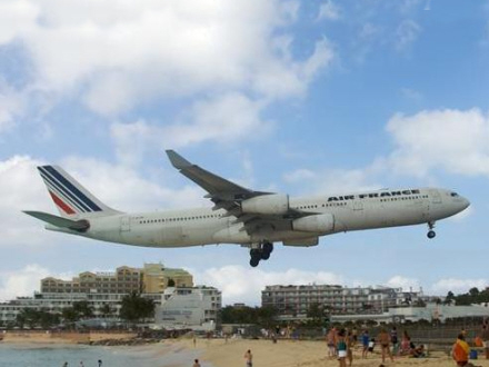Princess Juliana International Airport, Philipsburg, St. Maarten: Solbaderne ligger på en strand lige ved den korte landingsbanes begyndelse. Det er lige før de mest vovede kan nå landingshjulene...
