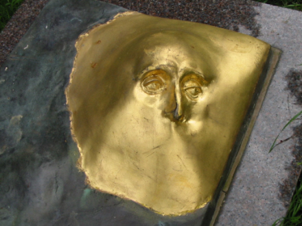 På Simon Spies' gravsten på Hørsholm Kirkegård sidder et bronze-profil af hans ansigt.