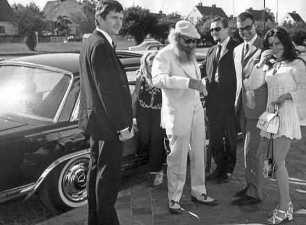 Simon snakkede løs hvor som helst. Her ved udstigningen fra sin Mercedes 600 med nogle af morgenbolledamerne...