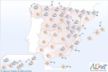 Mandag og tirsdag delvist skyet og omkring 30 grader, onsdag og torsdag klart, fredag igen mulighed for nedbør.