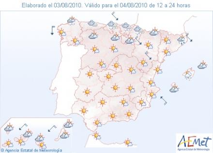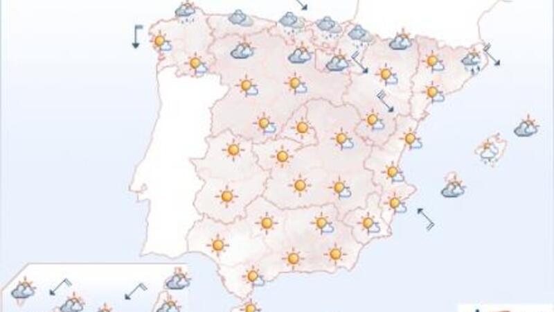 Costa del Sol får mest solrigt vejr, og omkring 30 grader. Let til frisk vind fra sydøst.