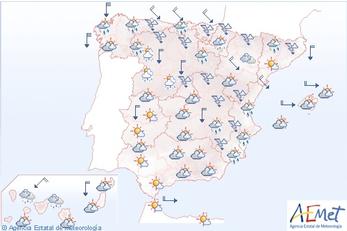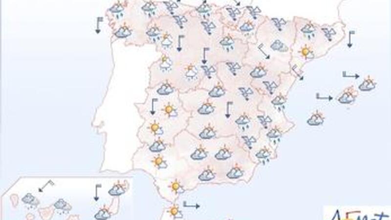 Der kommer kraftig nedbør i den nordøstlige del af landet, inklusive ferieøerne Menorca og Mallorca.