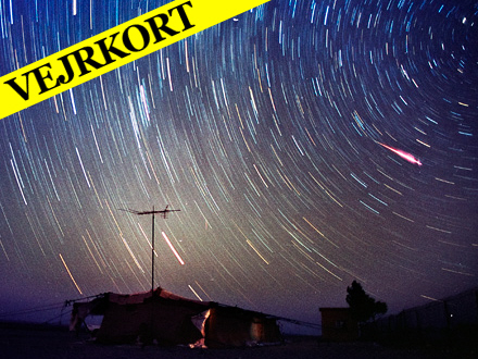 Du kan se stjerneskuddene i horisonten i nordøstlig retning. Der ventes et cirka hvert andet eller tredje minut.