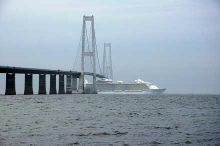 Allure passerer under Storebæltsbroen i 2010